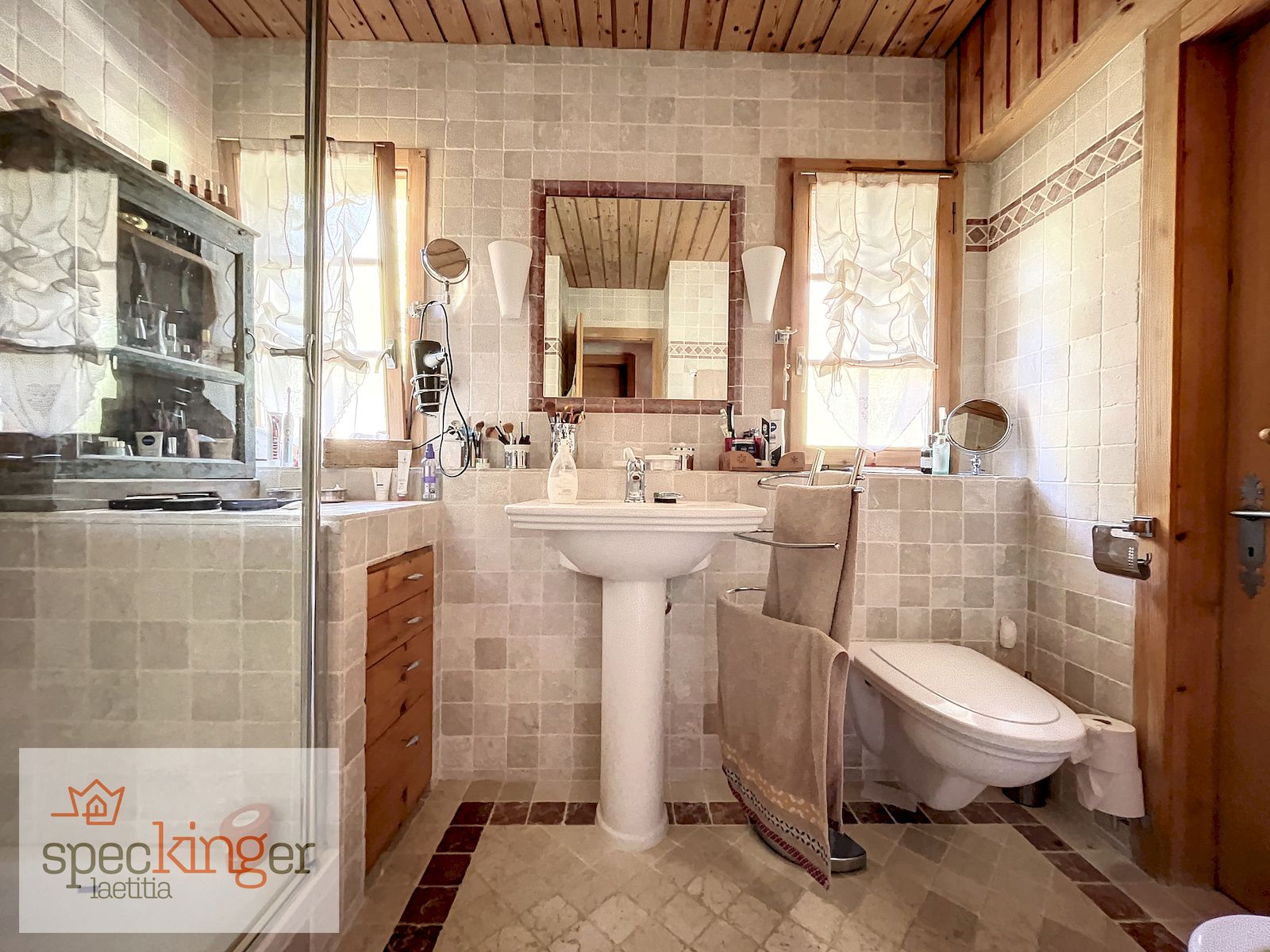 L’escalier vous mène à l’étage vers les pièces de nuit : 2 chambres offrant une belle superficie avec vue sur les Alpes, une chambre plus petite orientée Nord-Ouest et une salle de douche avec lavabo, WC et bidet. A l’arrière se trouve le petit espace buanderie.
